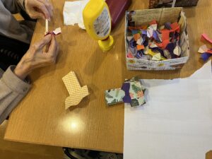 施設の一階にて神社に見立てた物を用意し、初詣をして、その後におみくじを引いて頂きました。