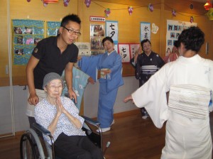 秋晴れのさわやかな一日、春に続き今年度2回目のバーベキューを7階屋上にて行いました。野菜やお肉、エビやウインナーなど目の前で炭火焼し、「お肉ちょうだいねー」など皆さまの注文を聞きながら、好きな物を選んで召し上がっていただきました!お肉が好きな方も多いですが、人気はやはり「南京ちょうだい」との声が多かったです(^^)食後は外の風を感じながら「今日は当たり日やな~」とにっこりまったりすごされていました。