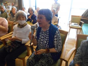 最後は飾った短冊を、利用者様同士で見せ合い、「何書いたん?」「ええ願い事やな」と楽しげに盛り上がっておられました。