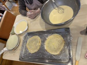 ホットケーキミックスと卵、牛乳を混ぜた生地を薄く焼きました。
