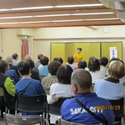 今回、さやま落語会よりアマチュア落語家さんにお越しいただき、落語会を開催しました。游々亭十吾さん、喜楽亭ポッポさん、生駒亭文座さんの3名の方に古典落語を演じていただき、楽しい時間となりました。堺市南区版広報に掲載していただいた事もあり、予想以上の方に来館していただきありがとうございました。