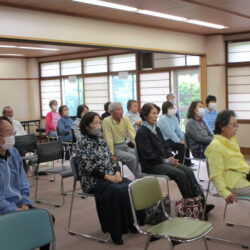 当センターでは、堺市を中心に活動されている、よさこいチーム「ようきや輝楽」さんに鳴子踊りを披露していただきました。事前申し込み不要として開催したので何人の方が集まっていただけるか不安でしたが、窓口での積極的な勧誘もあり、予想をはるかに上回る50名の方が参加していただきました。