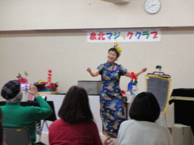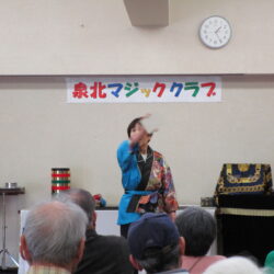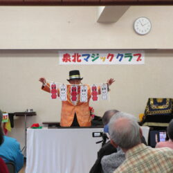 今回、泉北マジッククラブさんによるマジックショーを開催しました。泉北マジッククラブさんは、歴史あるクラブで泉北地区を中心に活動されています。当日は開演2時間前から準備していただき、12人の方に出演していただきました。プロ顔負けの内容で、観覧者60名の方の拍手喝采で大いに盛り上がり、あっという間の2時間でした。