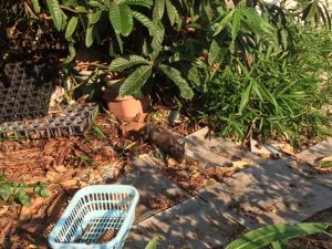 菜園の野菜たちのお世話をしていると、ゴソゴソ何か物音が聞こえてきました。