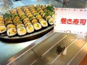 メニューは、巻きずし・かやくごはん・おかゆ・かけうどん・茶碗蒸し・鶏肉唐揚・コロッケ・おでん・グラタン・パンプキンスープ・さつま芋蒸しパン・コーヒーゼリー
