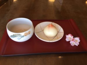 八田荘老人ホームの甘酒は、酒粕から作るタイプの甘酒です。おやつの「桃まんじゅう」の中は、人気のこしあんが入っています。蒸してアツアツで食べていただきました🎵