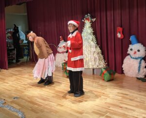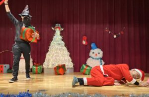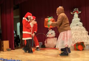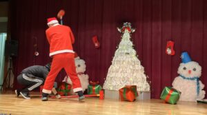 職員によるショートコントサンタVSブラックサンタ」を披露( ゚Д゚)