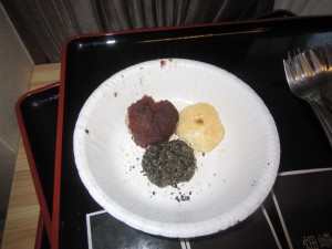 その後、出来上がった餅にあんこときな粉を絡めて![]()
