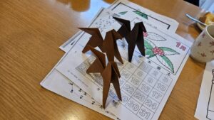 また、折り紙のボランティアの先生をお迎えし、干支の馬の折り方を教えて頂きました。