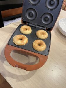 生地は絞り袋でドーナツメーカーに入れると上手く出来ました。