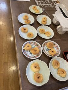 12月16日におやつレクを行いました。今月は豆腐を入れた焼きドーナツです。