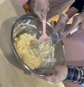 生地を焼き始めると甘い香りが漂い、利用者の皆様も「今日のおやつは何やろね?」「いい匂いするね」と楽しみにされていました。