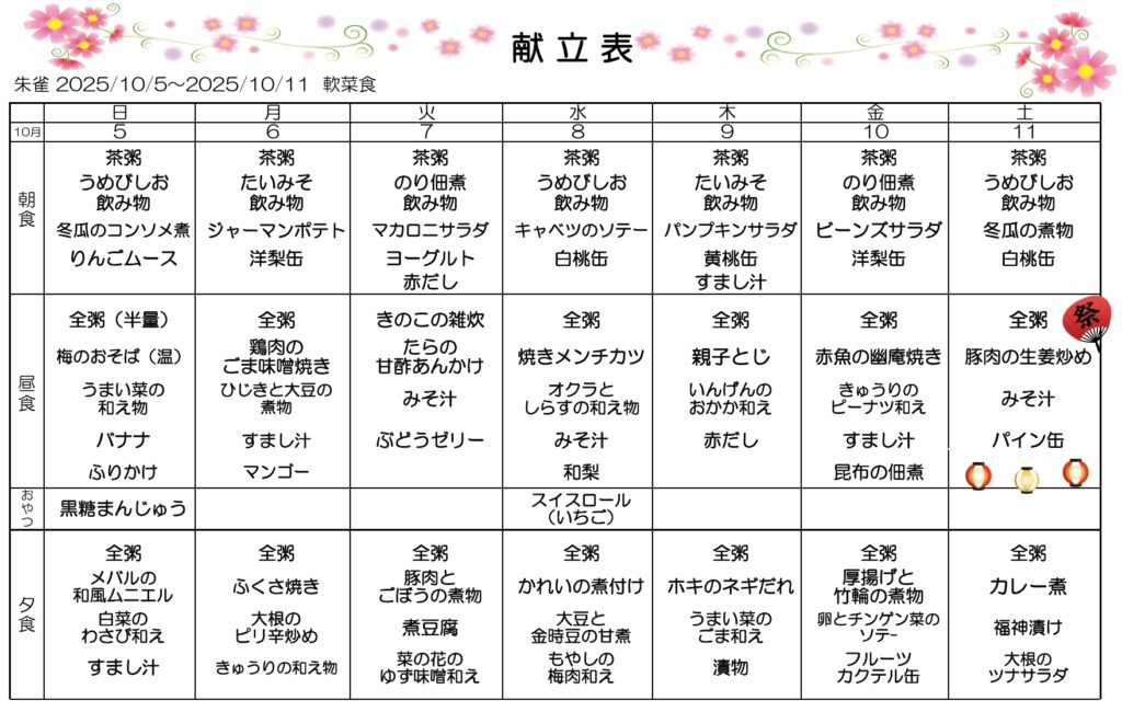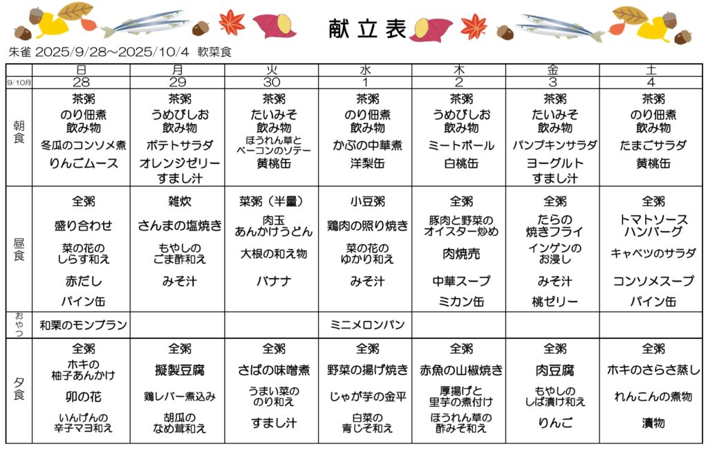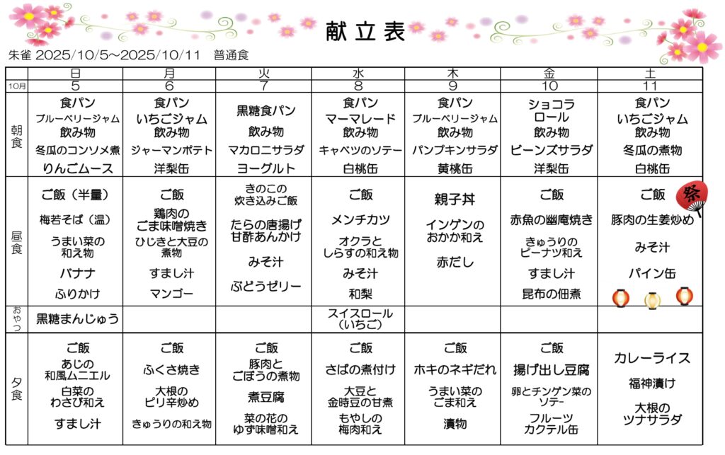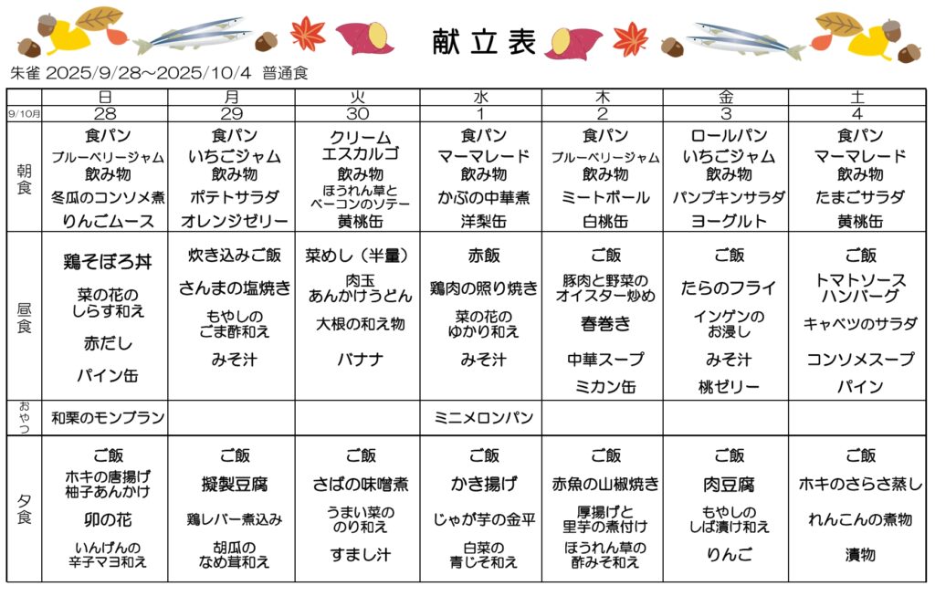10月1週・2週目の献立