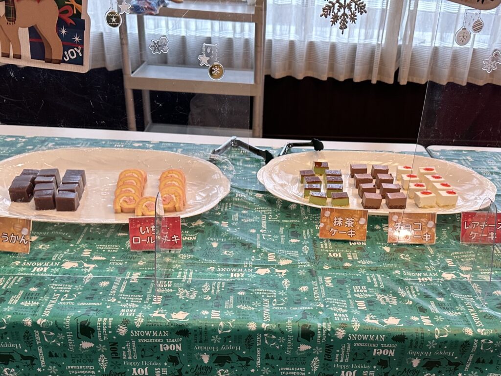 机などにクリスマスの装飾をし、8種類のデザートを準備しました🍰