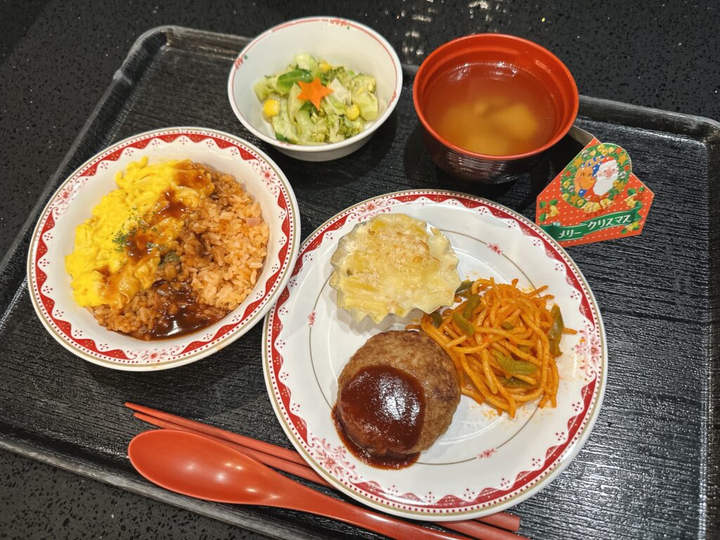 ・オムライス ・クリスマスプレート(チーズインハンバーグ、グラタン、ナポリタン)