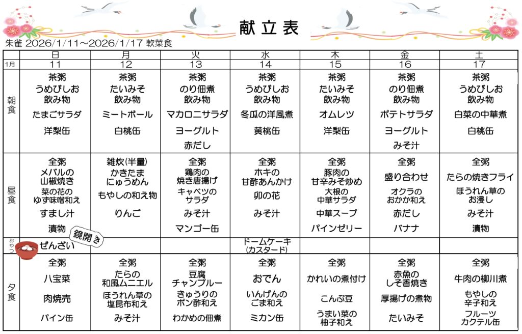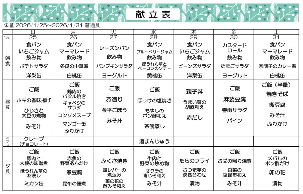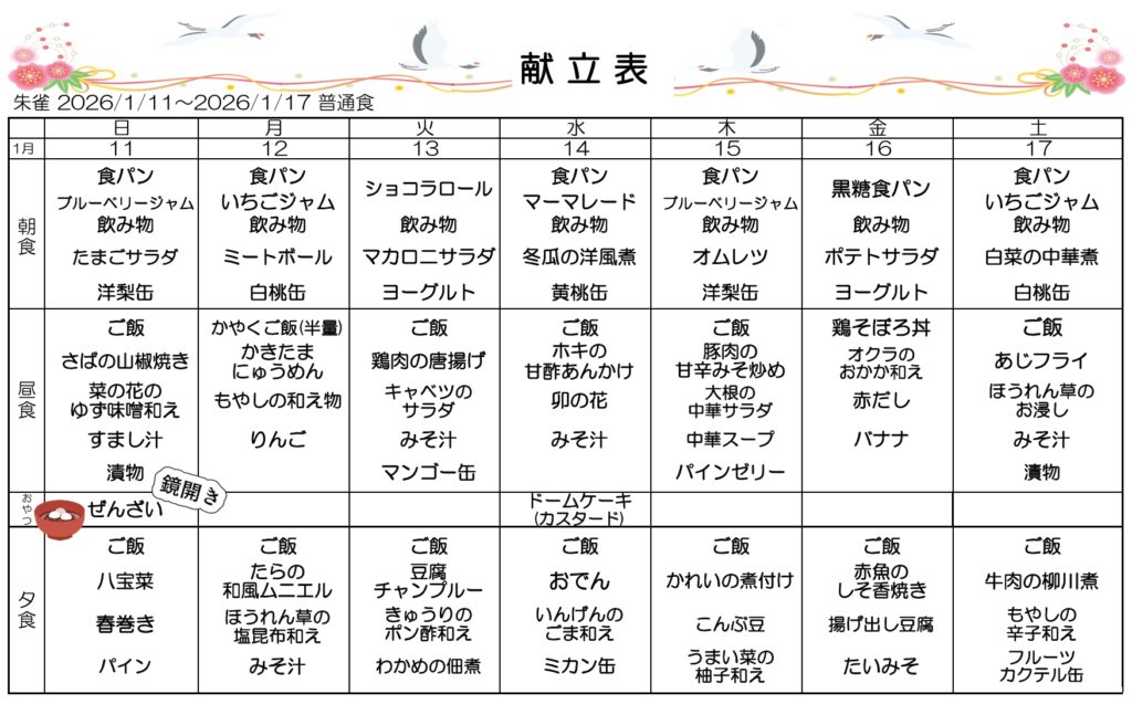 1月3.4.5週目の献立です🌟