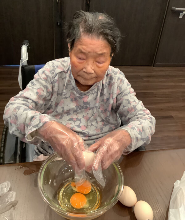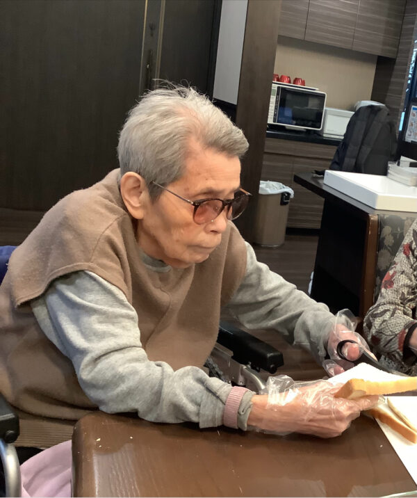 今月はおやつにフレンチトーストを入居者様にお手伝いしてもらい作りました(^^♪