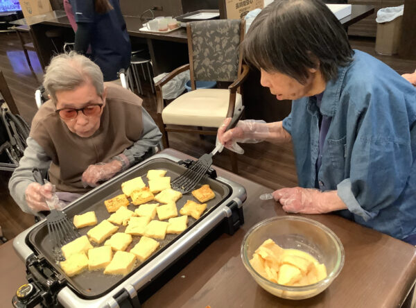 入居者様同士笑顔でお話しされながら焼いて下さっていました🎵