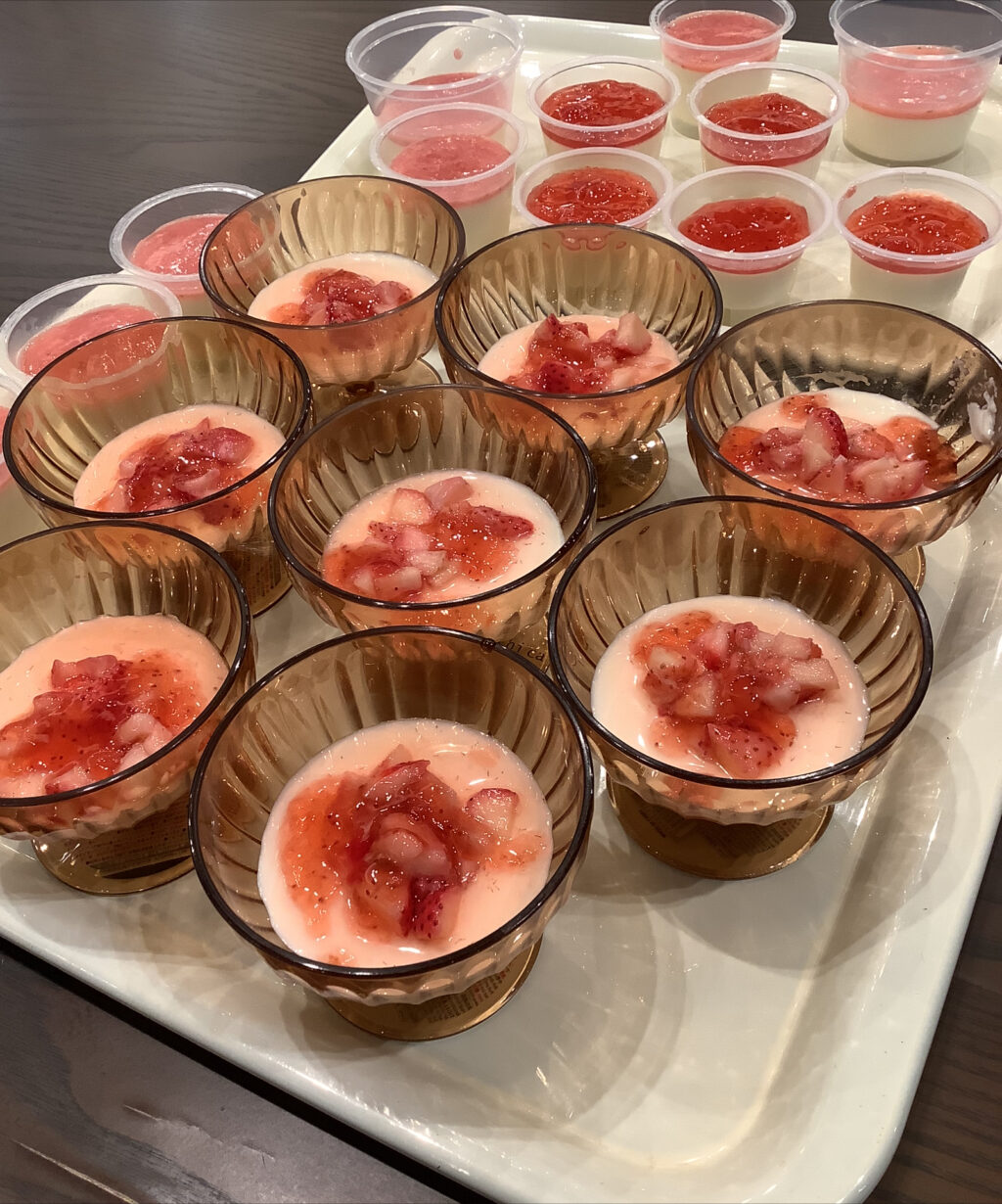 今回のおやつは、春を感じていただけるよういちごを使用したパンナコッタを