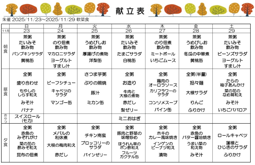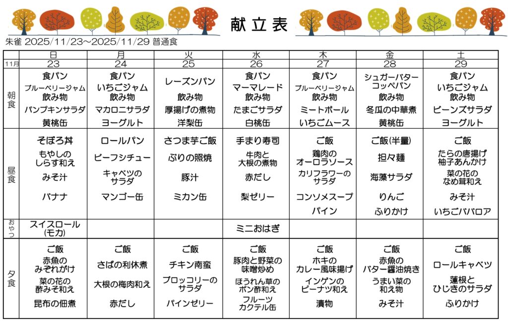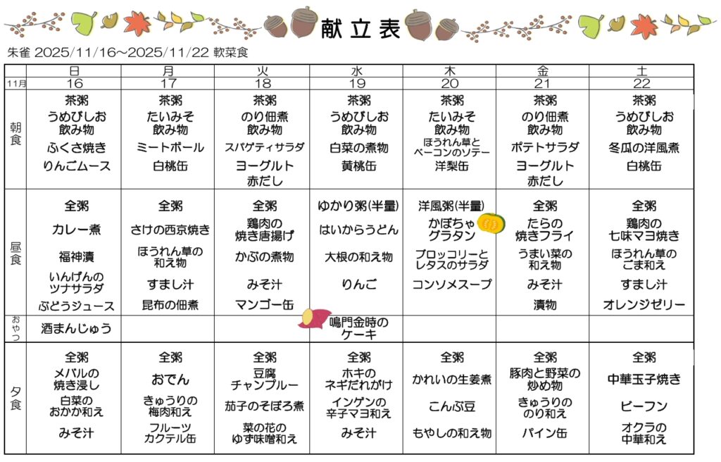 11月3、4、5週目の献立🍂
