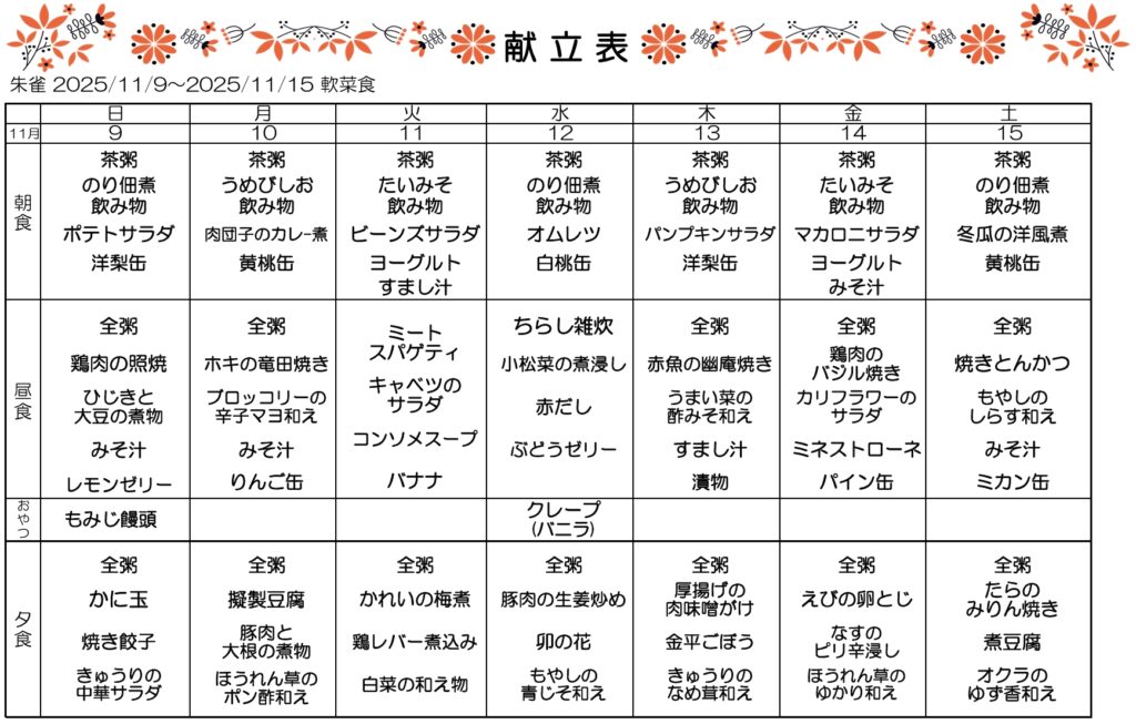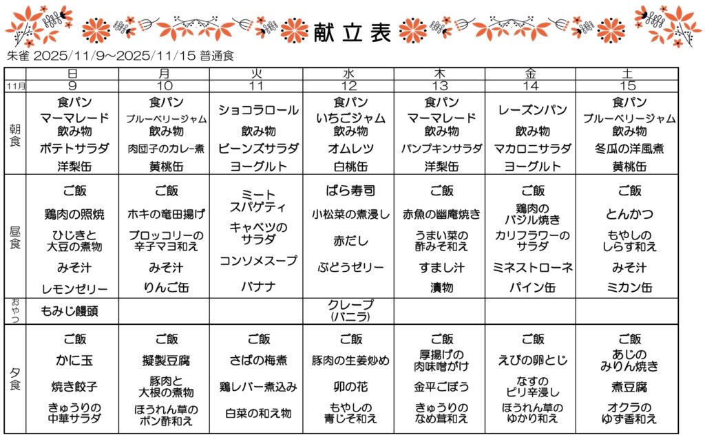 11月3.4.5週目の献立です🌟