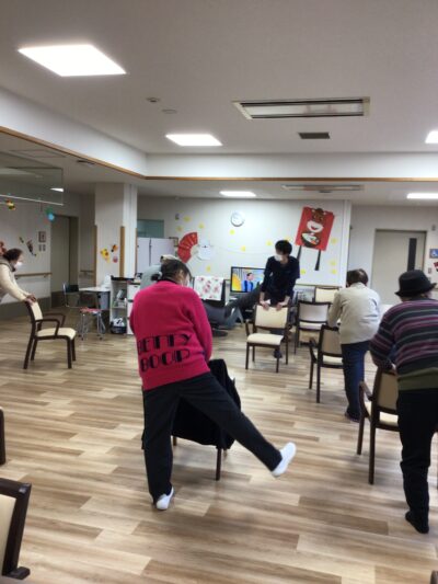 デイサービスでは、寒さに負けない身体づくりを目標に運動を行っています。
