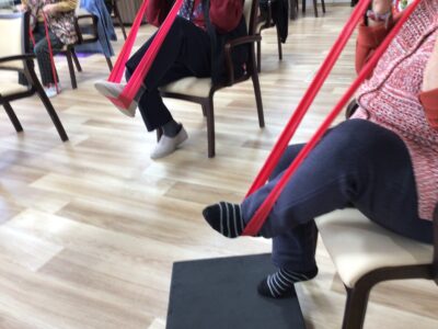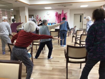 デイの体操では、元気な掛け声とともに身体を動かしています。