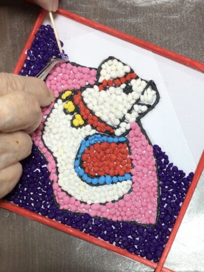 制作では、干支(午)のもこもこアートを作りました。