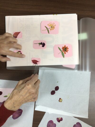 花を選んだり、並べる、押さえるといった作業は指先の運動や集中力にも繋がります。